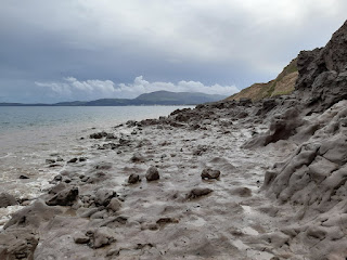 I walked and walked along the beach until I reached what looked very much like a (recent?) landslide. I was glad that the tide was what it was, it would have been absolutely impossible to get around it had it been higher. It was like walking on clay, soft and strange.